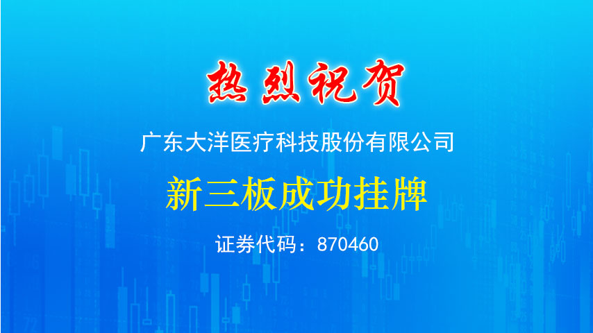 廣東大洋醫(yī)療科技股份有限公司1月20日掛牌成功,證券代碼870460